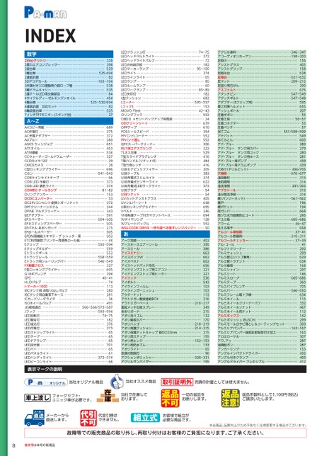 INDEX数字2Wayチリトリ…………………………………………………3383982馬力エアコンプレッサー……………………………………2段台車…………………………………………………………5292輪台車……………………………………………………525・6942連抵抗器…………………………………………………………823Dデコデカール…………………………………………103~1045383M旗付き333運動用介錯ロープ極…………………………3輪ドラムキャリー……………………………………………5353連テールLED用交換部品………………………………………844サイクルディーゼルエンジンオイル………………………4544輪台車……………………………………………525~530/6944連抵抗器左右セット…………………………………………826輪段差台車……………………………………………………5257インチTFTモニター(スタンド別)……………………………27A〜Zプ………………………………………689A4コピー用紙…………………………………………………375AC作業灯………………………………………………………372AC充電アダプター……………………………………………280………………………………………………………Adブルー651ASICSウィンジョブ…………………………………………453ATFオイル………………………………………………………534ATM運搬………………………………………………………CCウォーターゴールドスムーザー327…………………………CCDカメラ120°…………………………………………………29CMOSカメラ……………………………………………………28C型ロッキングプライヤー……………………………………696Cカン………………………………………………………541~542COBラインライトテープ66373COBLED作業灯………………………………………………374COBLED調色ライト…………………………………………COMBOテールラン……………………………………81~82Dリングアンカー………………………………………………153DCDCコンバーター……………………………………………53372DC24Vコンセント変換シガーソケット……………………DPFクリーナーシステム……………………………………344DPINEマルチクリーナー……………………………………343EEアダプター…………………………………………………591EPスペーサー……………………………………………504~505505EPネスティングスペーサー…………………………………215EPパネルあおりガード………………………………………EPロールスペーサー…………………………………………505EPDM高機能スキマテ-プシャッタ-用…………………502ETC利用履歴プリンター用感熱ロール紙………………………44593~594Eクリップ…………………………………………………559Eクリップホルダー……………………………………………Eトラックポール………………………………………………552Eトラックレール…………………………………………558~559Eトラック用ショーリングバー…………………………546~549FX制菌クロス…………………………………………………327F型ロッキングプライヤー……………………………………695G18ギアレンチ………………………………………………394GPS……………………………………………………………40~41H.I.Dバルブ74iマーカー1000………………………………………………113IBCタンク用液取り出しバルブ……………………………280IBCタンク用自重落下ホース…………………………………281…………………………………………36ICカードリーダライタ491ISOホイールバルブ……………………………………………JIS規格適合………………………………566~568/573~587Jフック……………………………………………………593~594LED回転灯……………………………………………………74~75182LED警告灯………………………………………………………LED蛍光灯………………………………………………………376LED作業灯………………………………………………………373LEDストリップライト……………………………………………6565LEDテープ…………………………………………………………LEDドアランプ……………………………………………………65LED投光器………………………………………………………701LEDバー……………………………………………………………65LEDパネルライト…………………………………………………61LEDハンディライト………………………………………372~374LEDビーコンライト………………………………………………68………………………………………………………ププブププ………………………………………………………LEDフラッシュ灯……………………………………………74~75372LEDヘッドベルトライト………………………………………72LEDヘッドライトバル…………………………………………182LED方向指示板…………………………………………………LEDマーカーラン………………………………………95~100LEDライト……………………………………………………