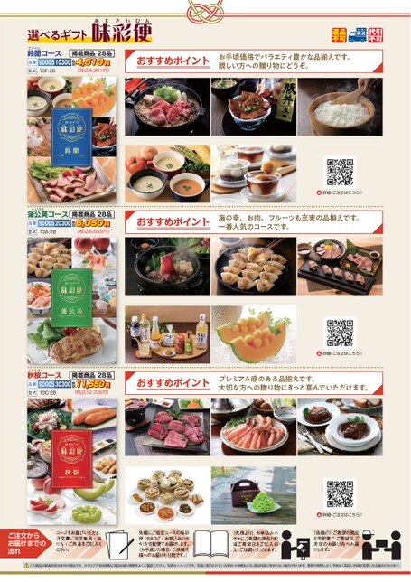 返品不可メーカー直送代引不可ん便び彩さいあじ選べるギフト味おすすめポイントお手頃価格でバラエティ豊かな品えです。親しい方への贈り物にどうぞ。おすすめポイント海の幸、お肉、フルーツも充実の品えです。一番人気のコースです。詳細・ご注文はこちら!おすすめポイントプレミアム感のある品えです。大切な方への贈り物にきっと喜んでいただけます。詳細・ご注文はこちら!詳細・ご注文はこちら!税別掲蘭コース載商品28品90005103004,510円ずらん鈴す品番型式13F-28(税込4,961円)公英コース掲載商品28品90005203006,050円税別んぽぽ蒲た品番型式13A-28(税込6,655円)掲載商品28品11,550円税別(税込12,705円)品番9000530300桜コースすもす秋こ型式13C-28ご注文からお届けまでの流れこの商品は軽減税率対象外の商品です。カタログの有効期限と商品お届け期間をよくご確認ください。写真はイメージです。写真に使用されている食材・小物類などは、商品内容に含まれない場合があります。季節や時期により、予告なく取扱い内容が変更になる場合があります。